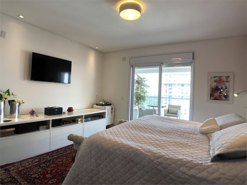 Apartamento alto padrão à venda no Ibirapuera, com living integrado à varanda gourmet (churrasqueira e forno de pizza) e vista para o Parque Ibirapuera. O apartamento possui 4 amplas suítes, cozinha com projeto pré-realizado em ilha e dormitórios para empregados. O edifício conta com lazer moderno e completo, incluindo academia com equipamentos Life Fitness, estúdio de pilates, quadra de squash, piscina, playground, brinquedoteca, salão de festas e área de descanso com sauna e sala de massagem. São 5 vagas de garagem. Local nobre, em rua tranquila, com segurança 24 horas.