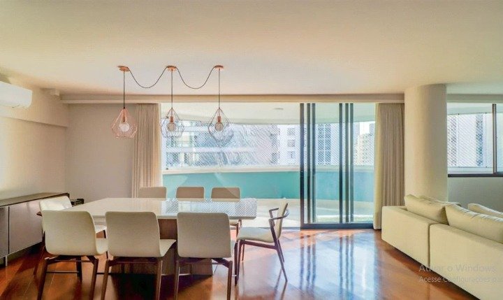 Apartamento pronto para morar na Alameda Lorena, com 150 a 155 m² úteis. Possui 3 dormitórios, todos com suíte, living com varanda e vista para o Parque Ibirapuera. O prédio tem estilo moderno e oferece várias comodidades, como academia de ginástica, elevador, playground, portaria, quadra poliesportiva, salão de jogos, aquecedor central e depósito.