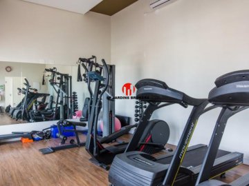 O condomínio oferece academia, solarium e espaço para churrasqueira.