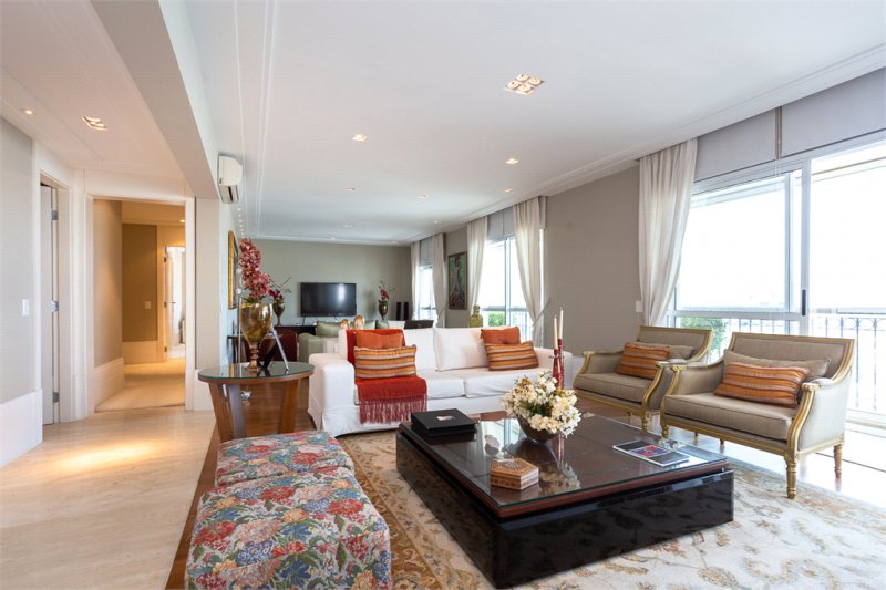 Apartamento com 291 m² de área útil, planta versátil com 3 ou 4 suítes, living espaçoso com integração ao terraço social e gourmet, perfeito para receber. Acabamentos de alto padrão: mármore, madeira e granito.