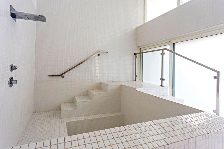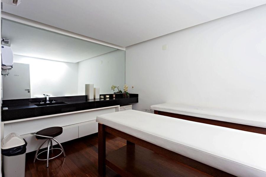 Spa com sala de massagem, banheira e sauna