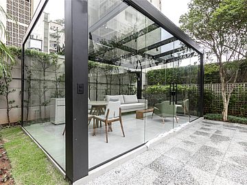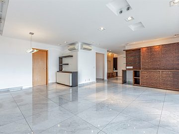 O apartamento tem planta de 190 m² e um terraço voltado para a Rua Estados Unidos, localizado entre o Clube Paulistano e o Parque Ibirapuera. É uma excelente opção para quem busca imóveis mais novos e com área de lazer no bairro dos Jardins. São 4 vagas de garagem.
