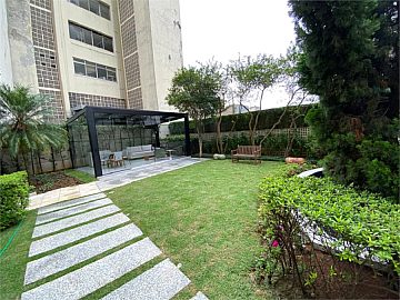 Apartamento para alugar nos Jardins, com 190 m² de área útil. Possui 4 dormitórios, sendo 3 suítes, e um living integrado à varanda. O prédio oferece lazer completo, com piscina adulto e infantil, academia equipada, quadra poliesportiva e brinquedoteca.