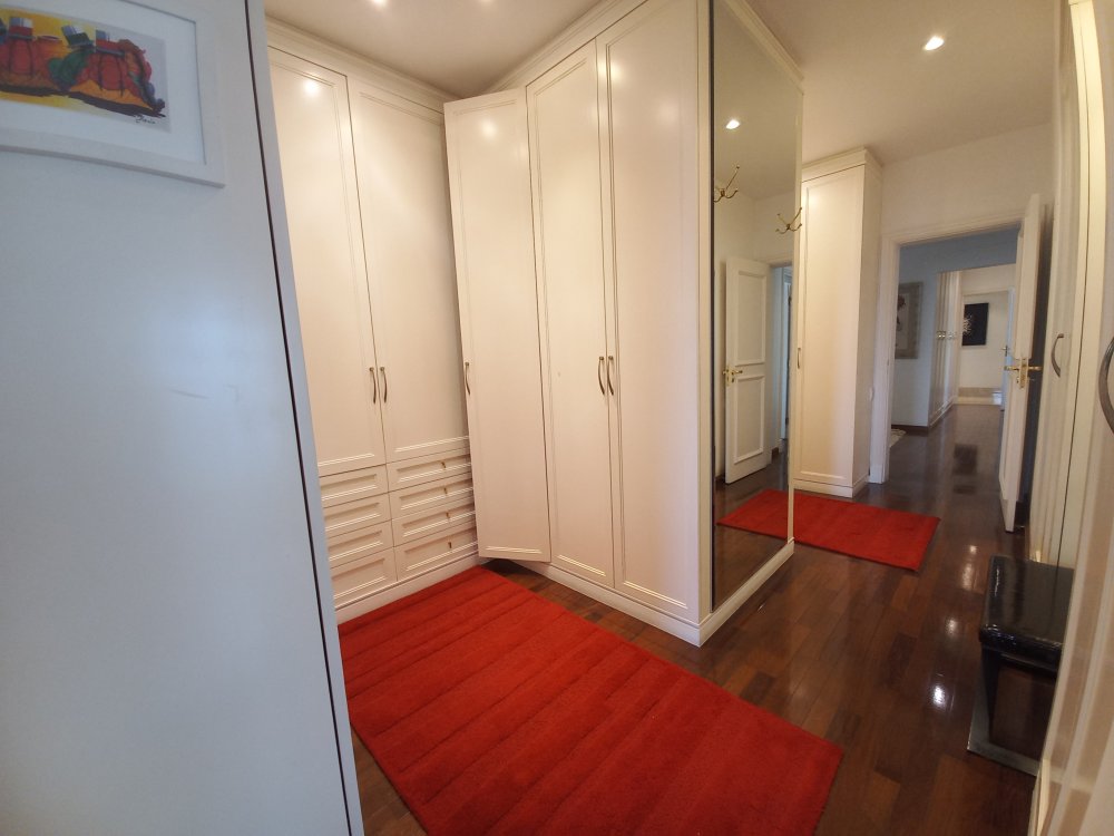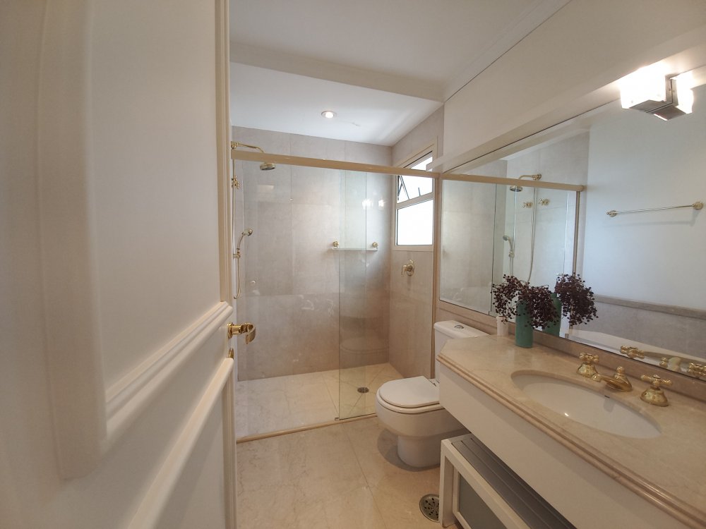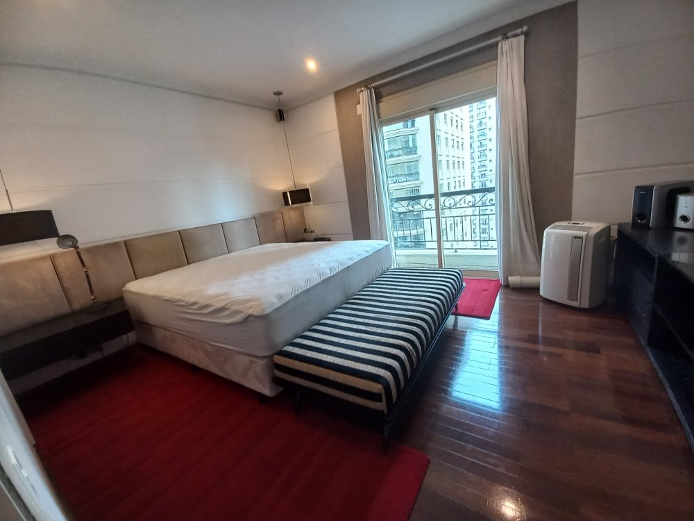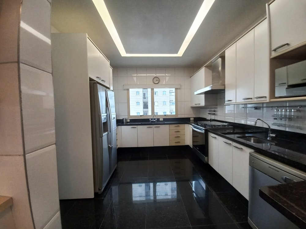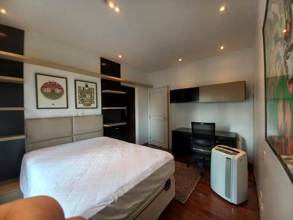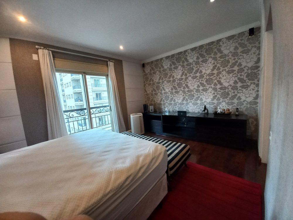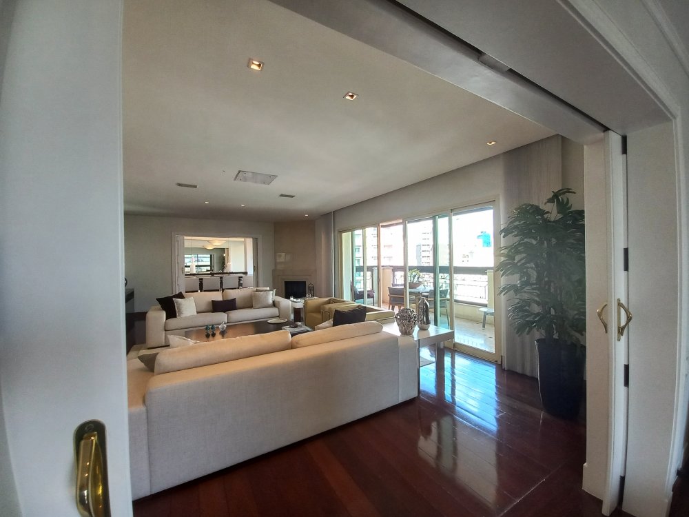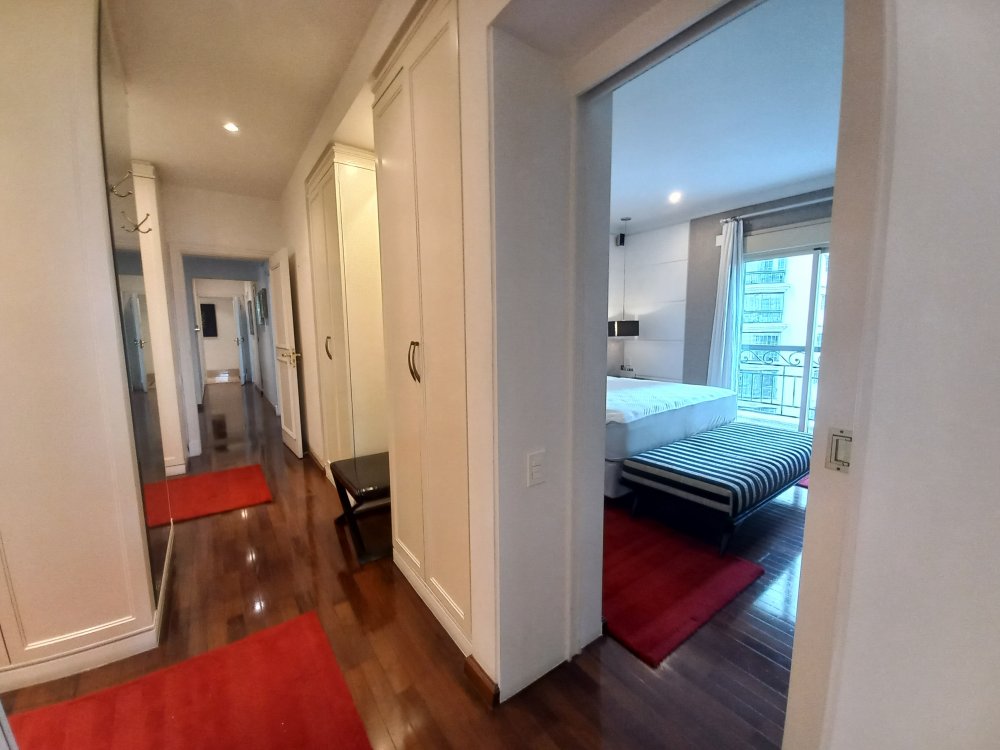 Apartamento totalmente mobiliado disponível para alugar, com uma área útil de 388 metros quadrados. O imóvel possui 4 suítes, sendo que a suíte master conta com uma hidromassagem. O living é espaçoso e oferece espaço para acomodar diversos ambientes, sendo conectado a uma varanda. A cozinha é planejada e inclui uma área de copa. Além disso, o apartamento possui 2 dependências de empregadas com banheiro, bem como 2 depósitos para armazenamento.