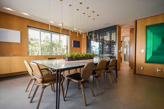 A cozinha é planejada e equipada com eletrodomésticos de alta performance, proporcionando uma experiência culinária excepcional.