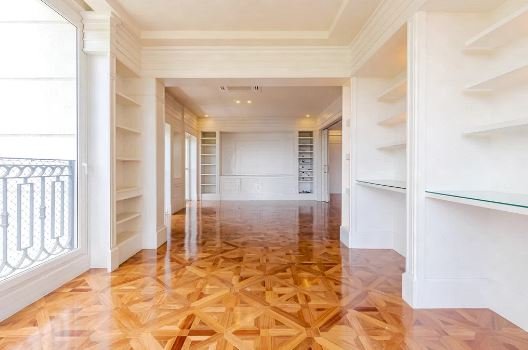 Apartamento a venda no Jardim Europa, 516 metros úteis. São 5 suítes, living com terraço, ampla sala para quatro ambientes, piso em madeira nobre, teto com decoração em gesso e luminárias embutidas, e ar-condicionado. A suíte master com closet para senhor e senhora e hidromassagem.