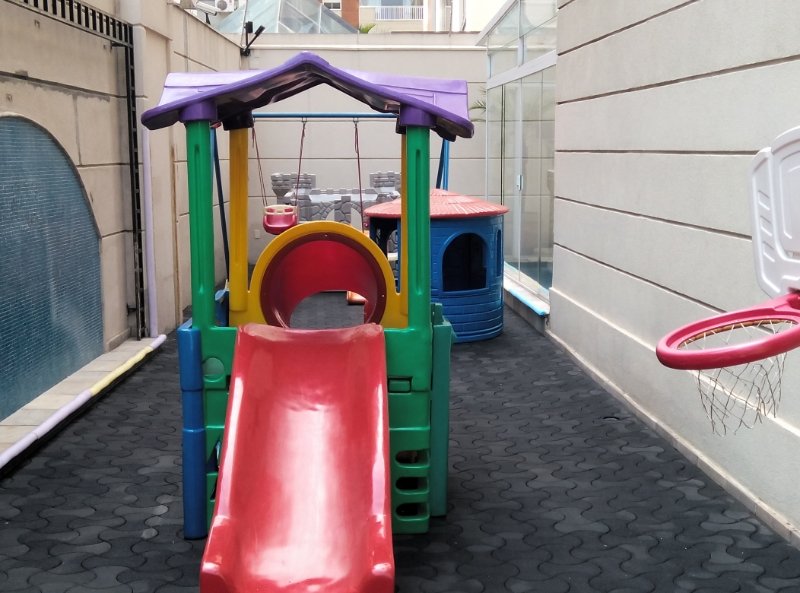 O edifício é seminovo, com arquitetura neoclássica e infraestrutura completa de lazer: piscina de raia aquecida, brinquedoteca, academia e playground.