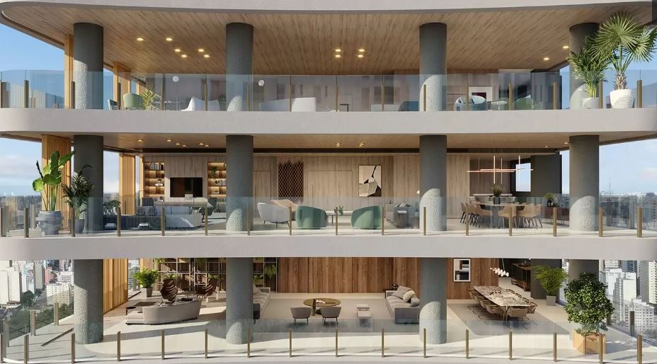 O Condomínio Vizcaya possui uma unidade por andar, oferecendo total privacidade. Cada apartamento é um verdadeiro refúgio, com 541 m², projetado para proporcionar o máximo de conforto e exclusividade. São 4 suítes generosas, 6 vagas na garagem e um depósito privativo.