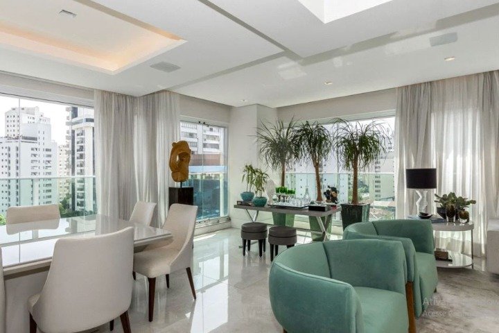 Apartamento semi-novo, alto padrão, à venda, com 315 m² de área útil, no Paraíso, São Paulo. Living com vários ambientes e varanda gourmet integrada. São 4 dormitórios, todos suítes, sendo a master com um luxuoso closet e varanda integrada.