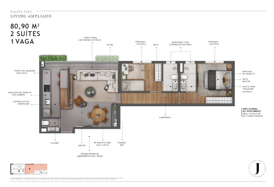 Opção com 2 suítes e living ampliado