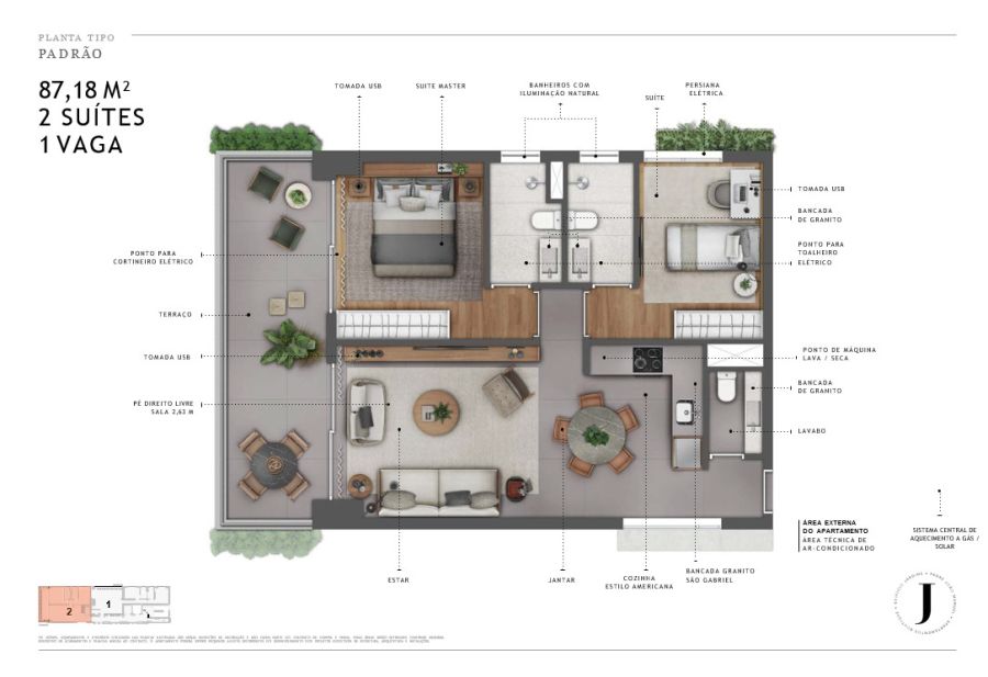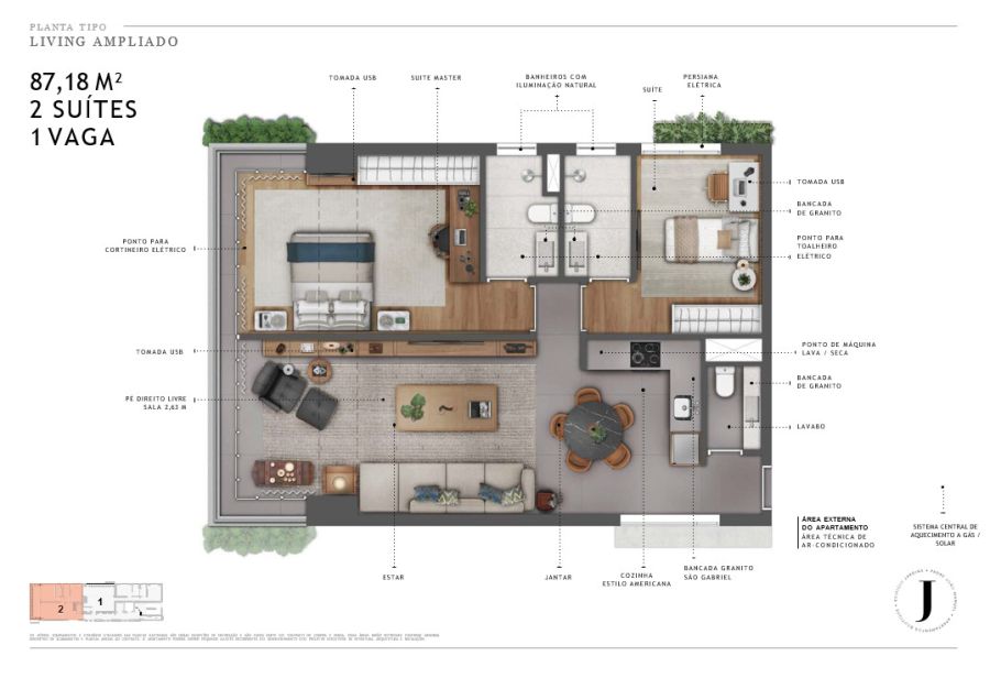 - Área Privativa: 87 m²