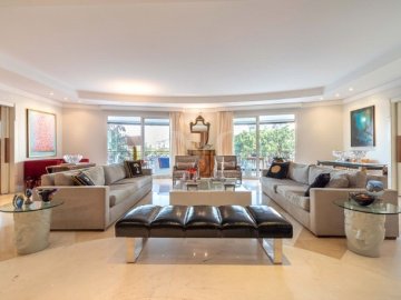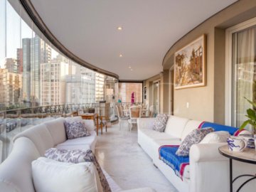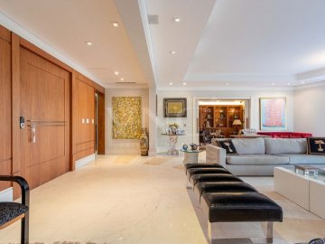 Apartamento de alto padrão no Jardim Paulista, com 523 m² muito bem distribuídos em 5 dormitorios, todos suítes amplas com armários, home theater, cozinha espaçosa, copa, lavabo e varanda com fechamento em vidro.