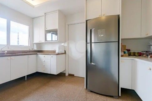 Localizado em um prédio imponente e muito bem administrado, em rua tranquila, o condomínio possui apenas um apartamento por andar, proporcionando máxima privacidade. O elevador social tem acesso direto à sala, e as janelas contam com excelente isolamento acústico.